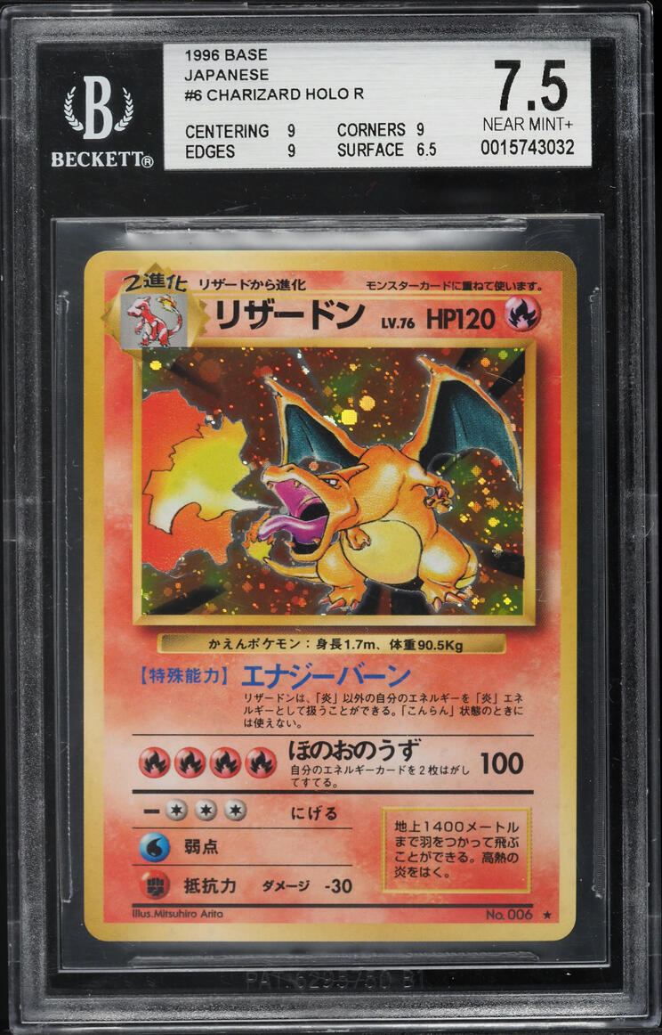 1996 POKEMON JAPANESE BASE SET HOLO CHARIZARD #6 BGS 7.5 NRMT+