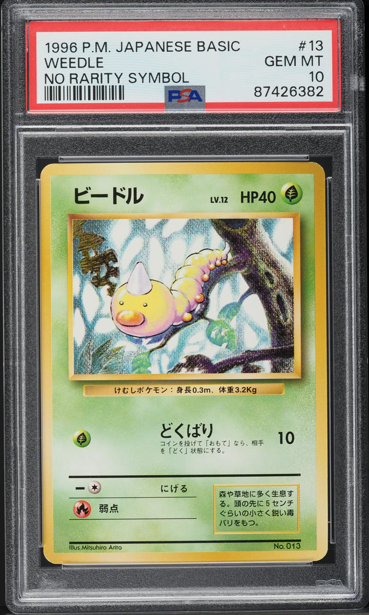 1996 POKEMON JAPANESE BASE SET NO RARITY SYMBOL WEEDLE #13 PSA 10 GEM MINT