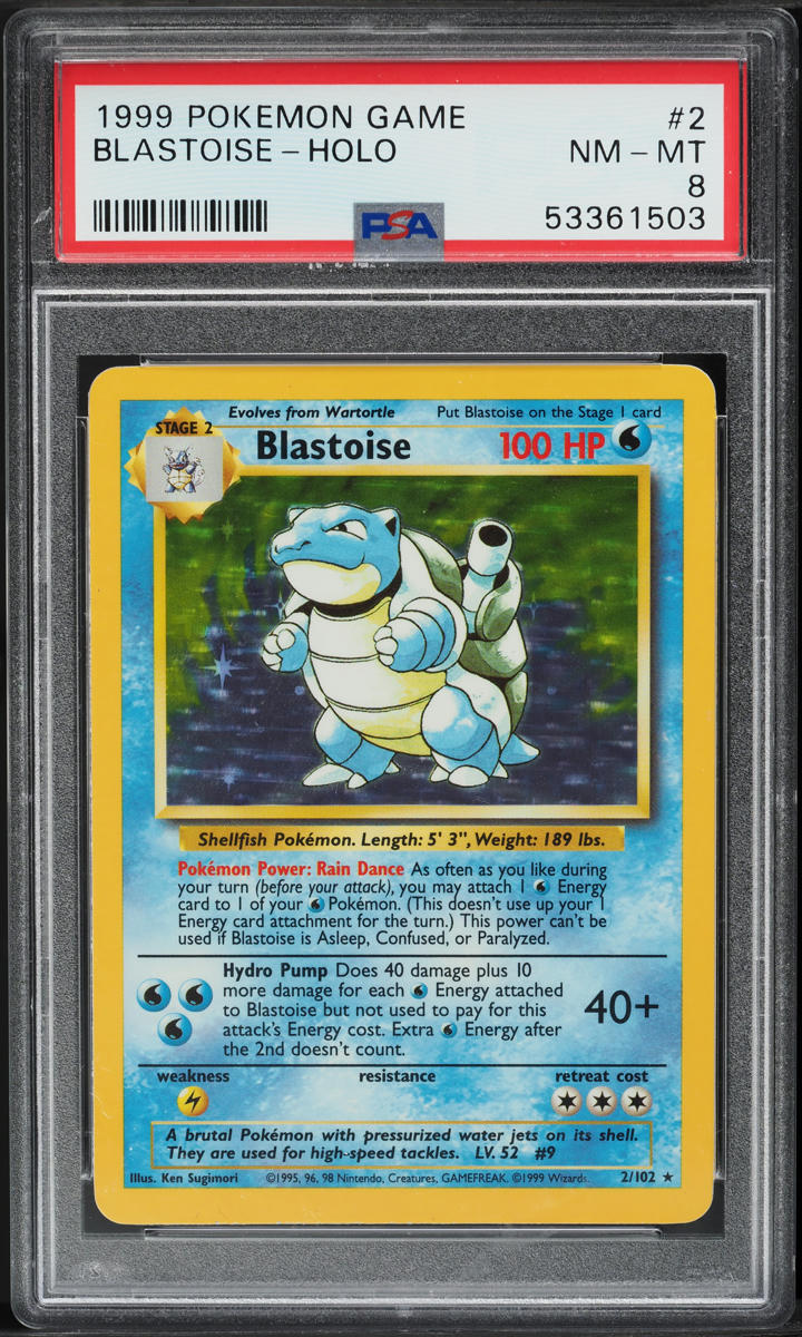 1999 POKEMON BASE SET HOLO BLASTOISE #2 PSA 8 NM-MT