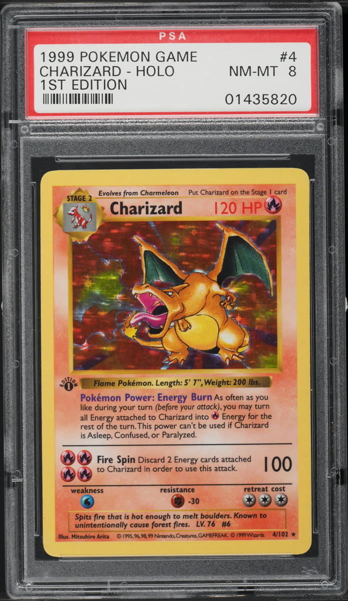 1999 POKEMON BASE SET SHADOWLESS 1ST EDITION HOLO CHARIZARD #4 PSA 8 NM-MT