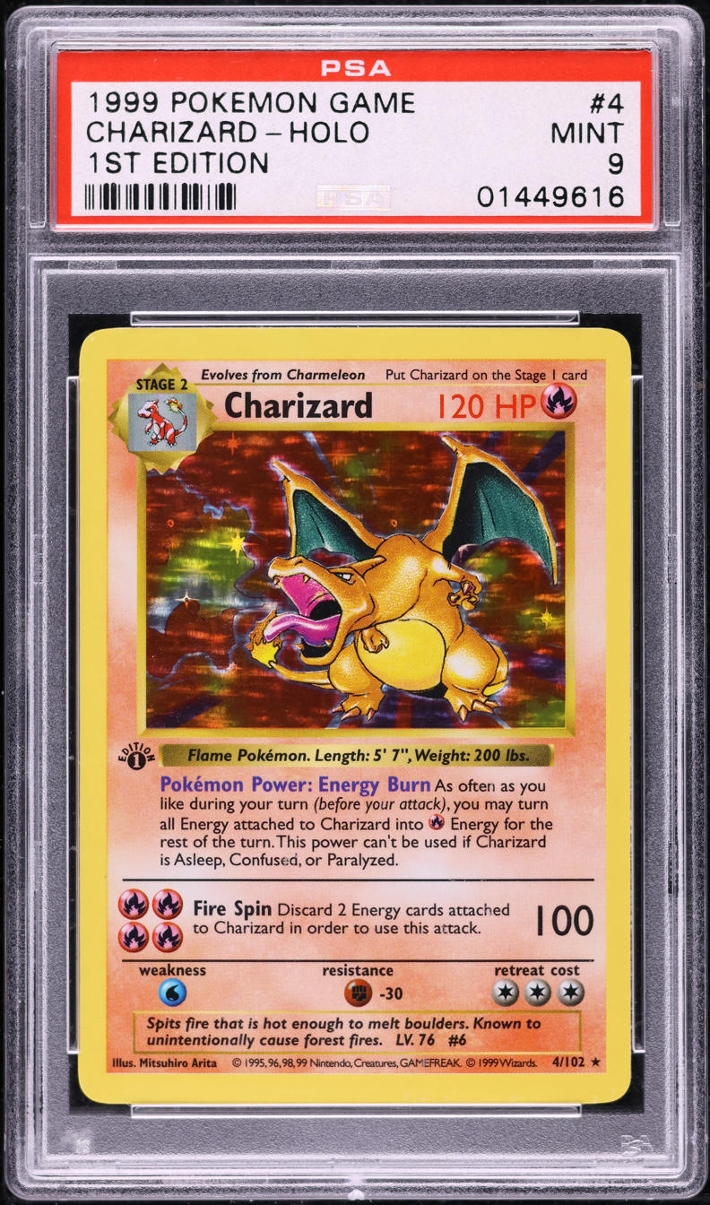 1999 POKEMON BASE SET SHADOWLESS 1ST EDITION HOLO CHARIZARD #4 PSA 9 MINT