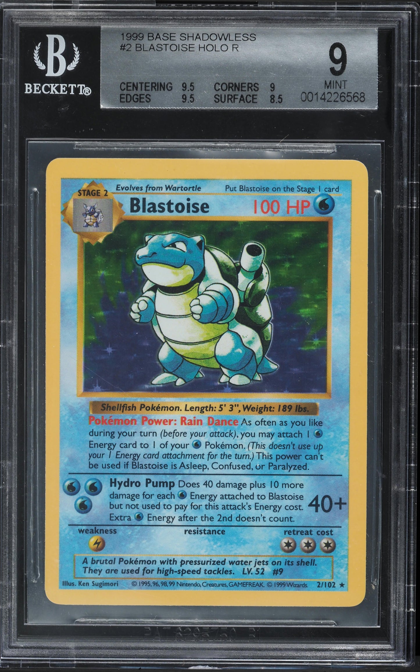 1999 POKEMON BASE SET SHADOWLESS HOLO BLASTOISE #2 BGS 9 MINT