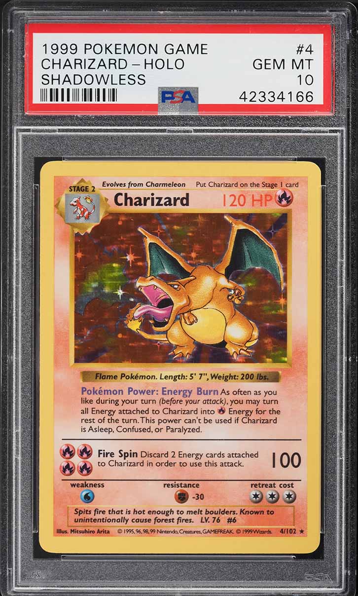 1999 POKEMON BASE SET SHADOWLESS HOLO CHARIZARD #4 PSA 10 GEM MINT
