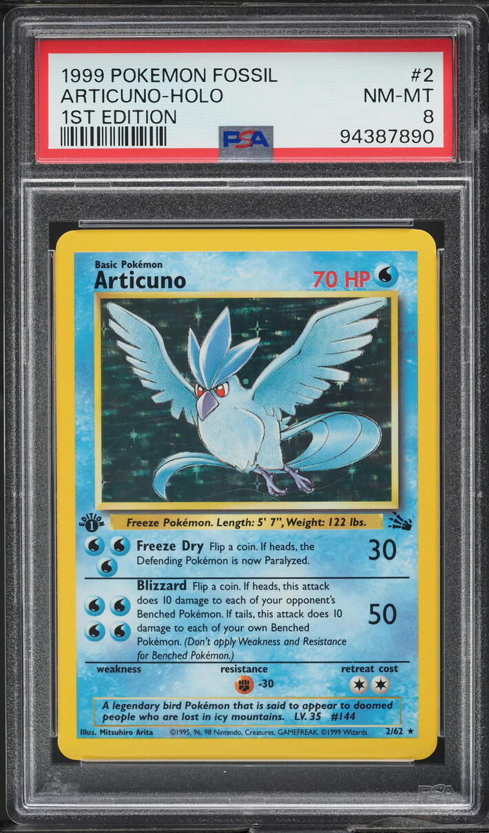 1999 POKEMON FOSSIL 1ST EDITION HOLO ARTICUNO #2 PSA 8 NM-MT