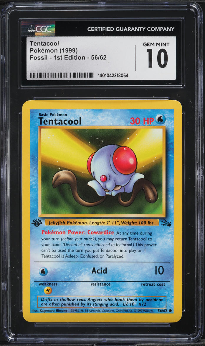1999 POKEMON FOSSIL 1ST EDITION TENTACOOL #56 CGC 10 GEM MINT