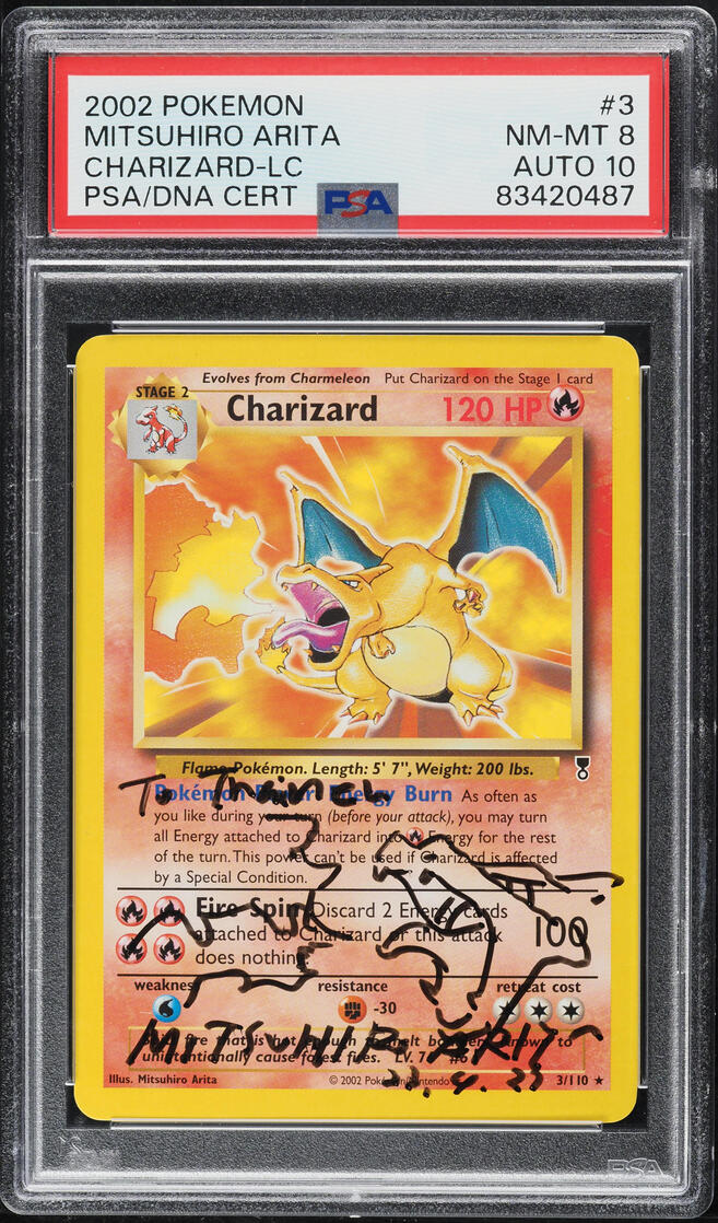 2002 POKEMON LEGENDARY COLLECTION CHARIZARD #3 ARITA AUTO 10 PSA 8
