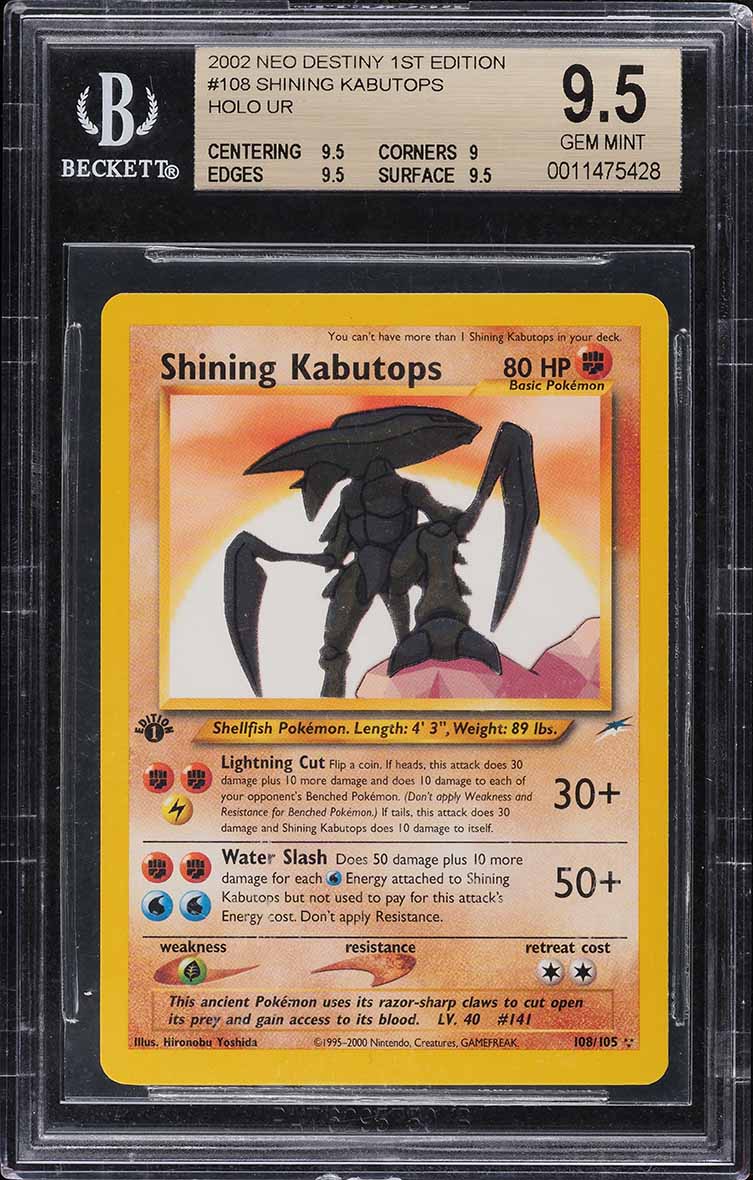 2002 POKEMON NEO DESTINY 1ST EDITION SHINING KABUTOPS #108 BGS 9.5 GEM MINT