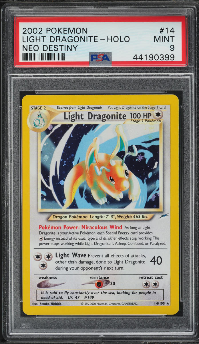 2002 POKEMON NEO DESTINY HOLO LIGHT DRAGONITE #14 PSA 9 MINT