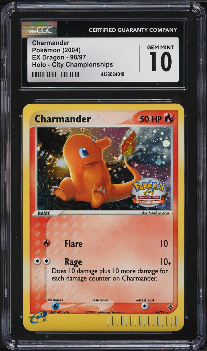 2004 POKEMON EX DRAGON CITY CHAMPIONSHIPS HOLO CHARMANDER #98 CGC 10 GEM MINT