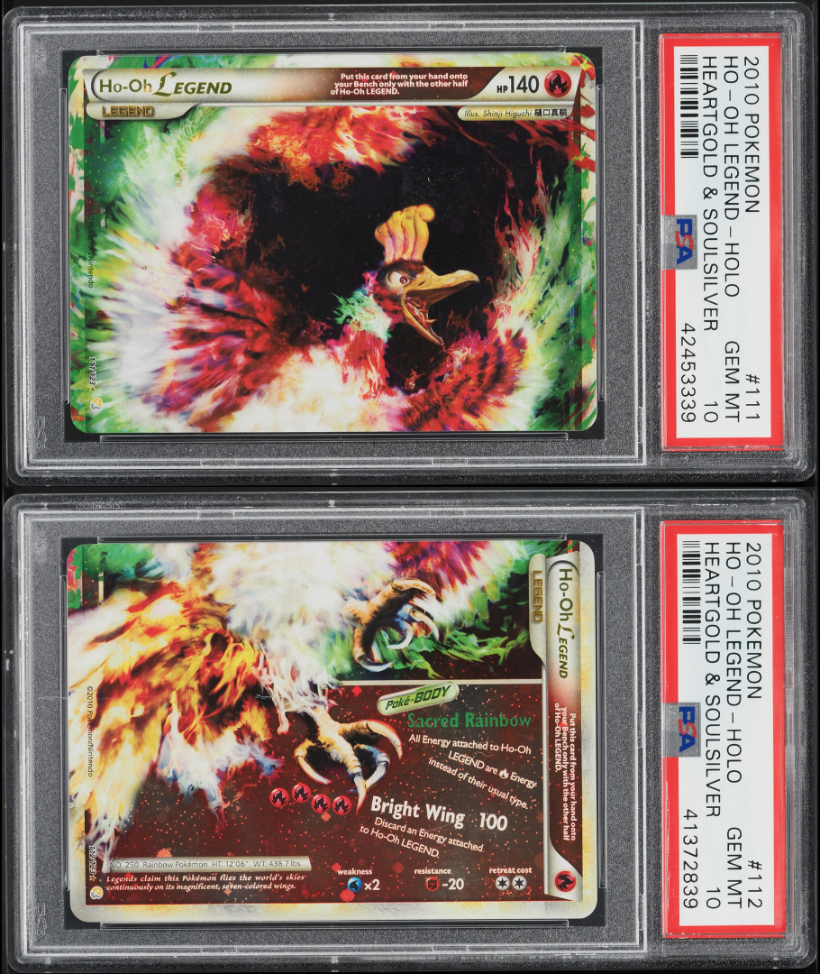 2010 POKEMON HEARTGOLD & SOULSILVER HOLO HO-OH LEGEND PAIR PSA 10 GEM MINT