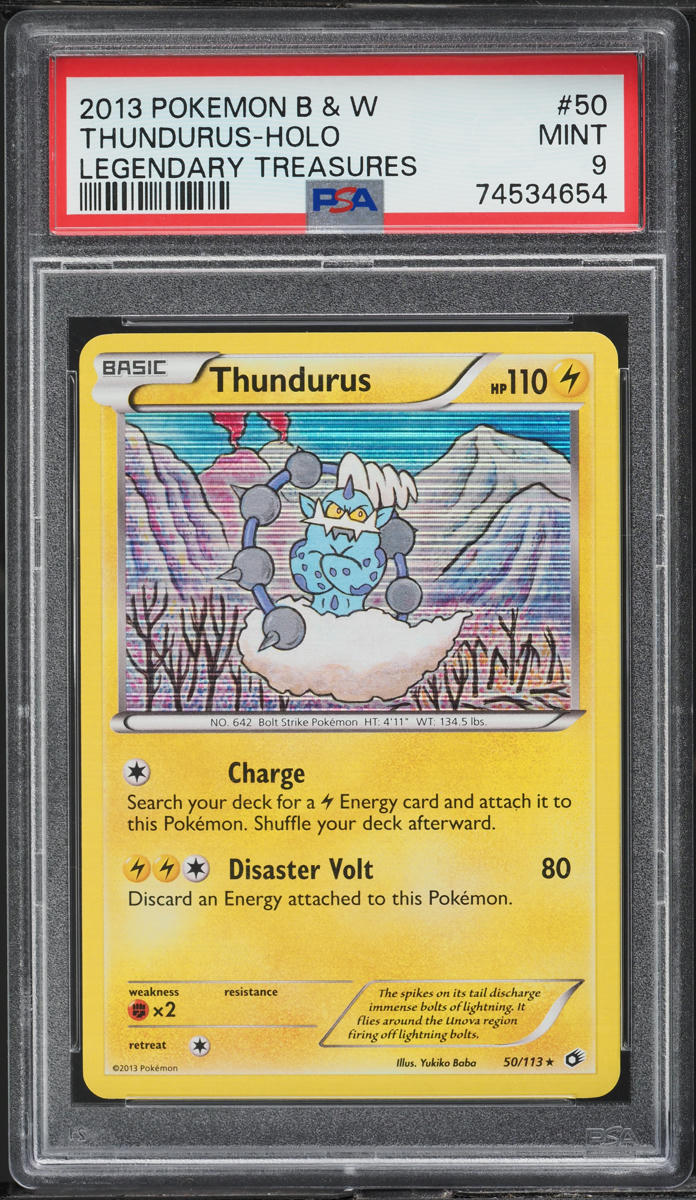 2013 POKEMON BLACK & WHITE LEGENDARY TREASURES HOLO THUNDURUS #50 PSA 9 MINT