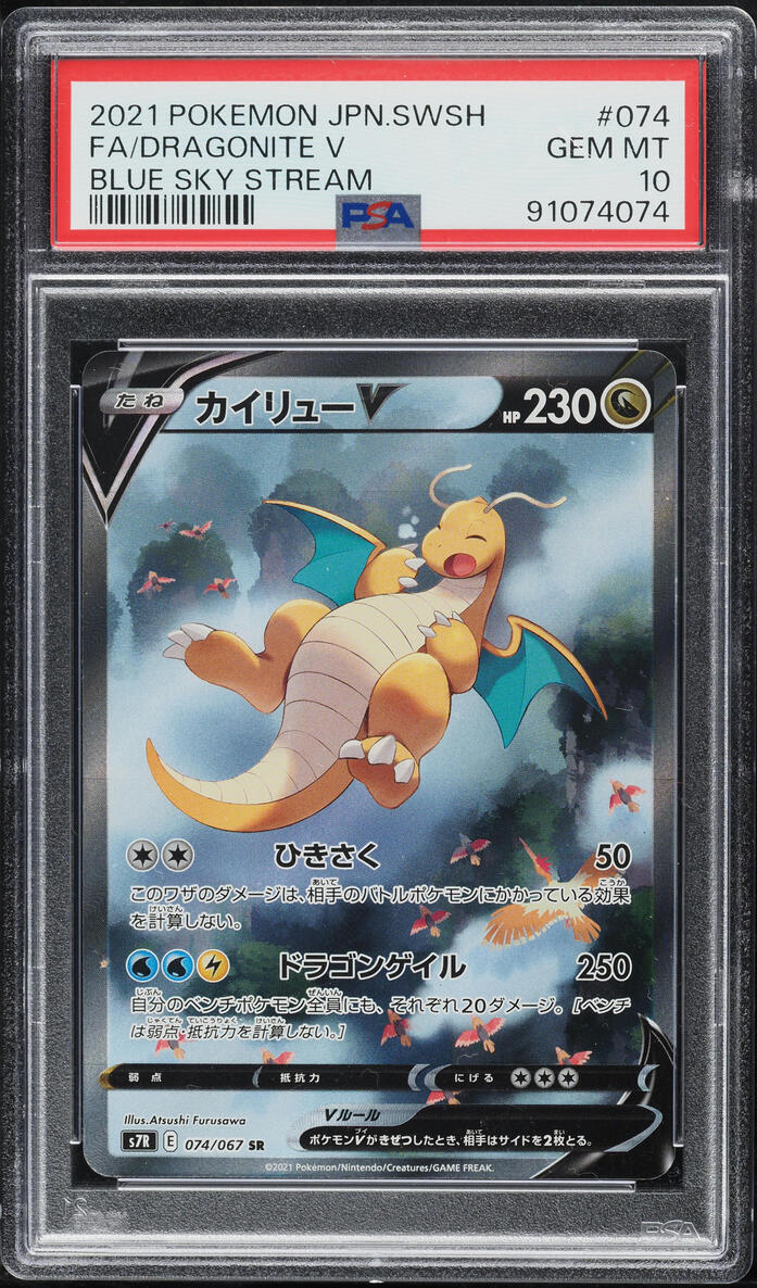 2021 POKEMON JAPANESE SWSH BLUE SKY STREAM ALT ART DRAGONITE V #74 PSA 10 GEM MINT