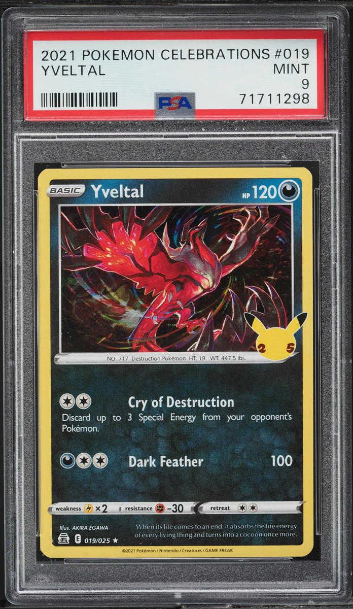 2021 POKEMON SWORD & SHIELD CELEBRATIONS YVELTAL #019 PSA 9 MINT